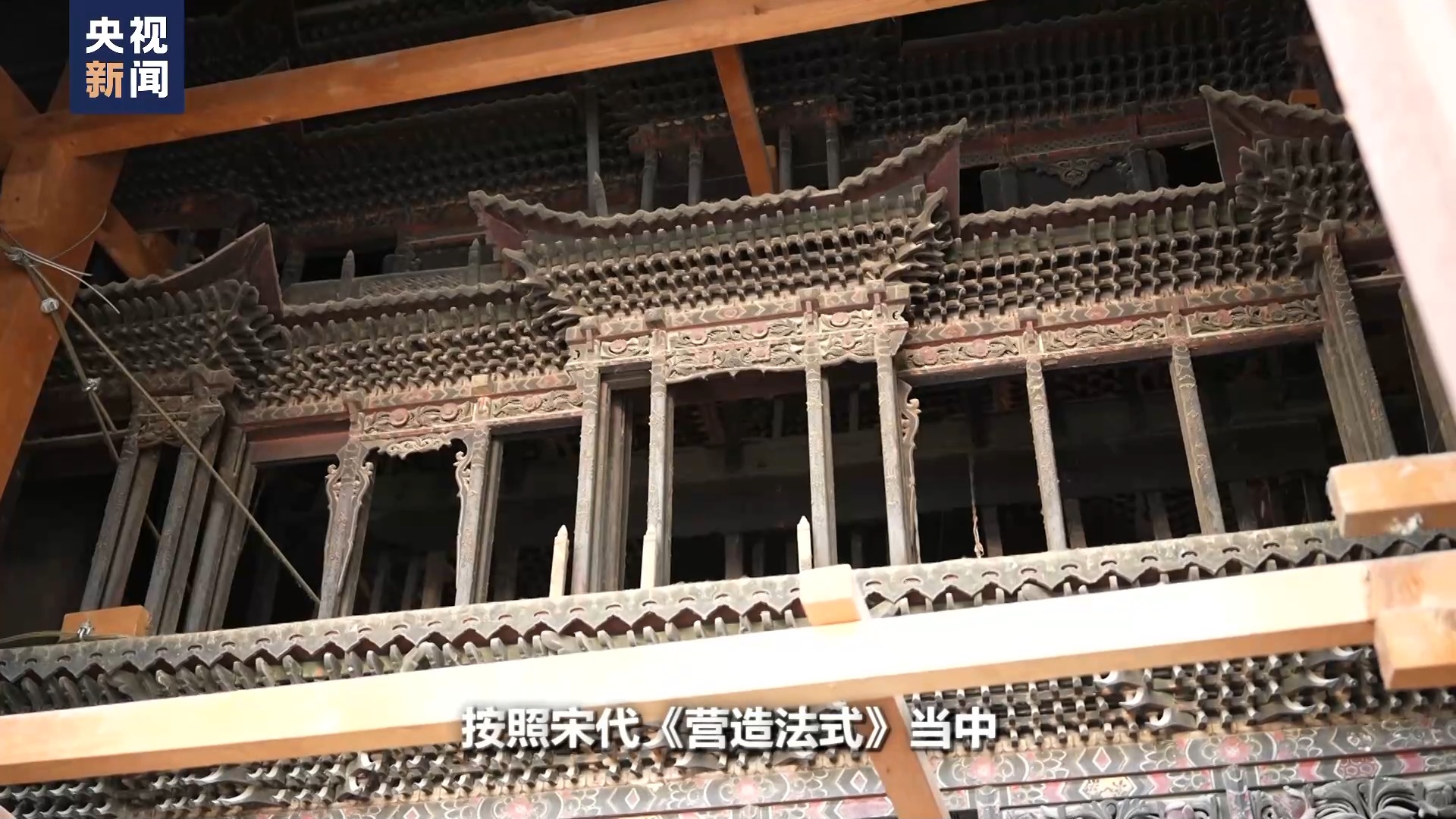 陜西省文物保護(hù)研究院保護(hù)修復(fù)一部副主任 張芳:他們當(dāng)時的反應(yīng)是非常驚訝,因?yàn)檫@種純粹的,沒有用一根釘子的榫卯結(jié)構(gòu)層層疊疊,在上面天宮樓閣的一個呈現(xiàn)。他們在法國是完全見不到,他們也想象不到。