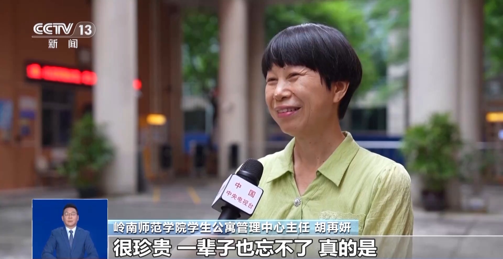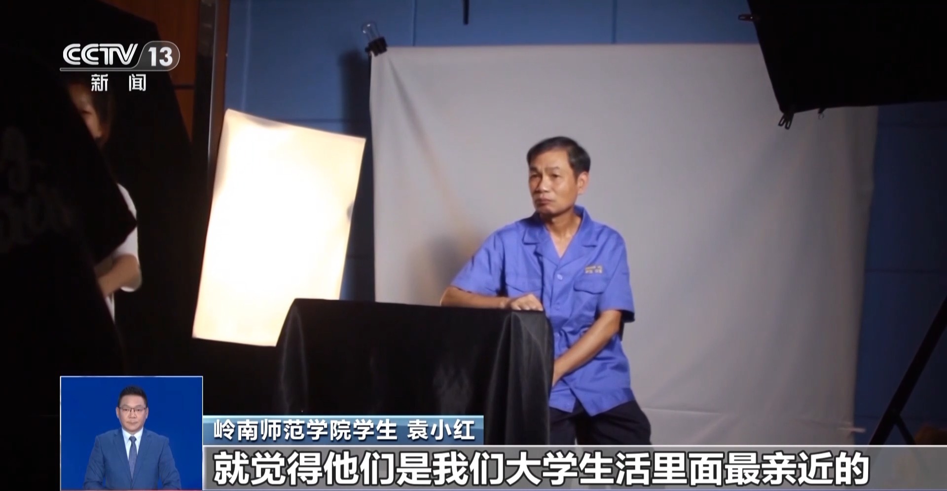 嶺南師范學(xué)院學(xué)生處思教科老師 林一帆:形象照是很有儀式感的,一方面我們學(xué)生會(huì)覺得,我們在回饋宿管阿姨(和叔叔),他們平時(shí)對我們非常好;另一方面,宿管阿姨她會(huì)覺得我這個(gè)職位是很有價(jià)值感的,是很有成就感的。