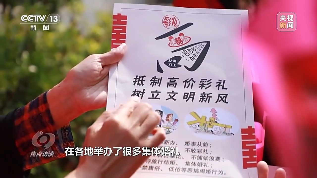 華中師范大學(xué)中國(guó)農(nóng)村研究院教授 黃振華:通過(guò)移風(fēng)易俗的方式,發(fā)揮村莊的內(nèi)生動(dòng)力。比如制定一些村規(guī)民約,調(diào)動(dòng)村民的積極性。有些地方成立紅白理事會(huì),由村里面的村干部、有威望的老人或者專門從事紅白事務(wù)的人參與,共同參與整治高價(jià)彩禮問(wèn)題,取得了很好的成效。