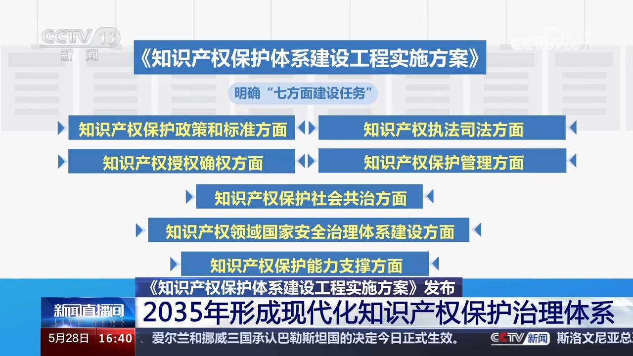 國家知識產(chǎn)權(quán)局5月28日舉行新聞發(fā)布會,重點介紹《知識產(chǎn)權(quán)保護體系建設(shè)工程實施方案》(以下簡稱《方案》)有關(guān)情況?!斗桨浮访鞔_,到2035年,知識產(chǎn)權(quán)保護體系和保護能力現(xiàn)代化基本實現(xiàn),形成政府履職盡責(zé)、執(zhí)法部門嚴格監(jiān)管、司法機關(guān)公正司法、經(jīng)營主體規(guī)范管理、行業(yè)組織自律自治、社會公眾誠信守法的現(xiàn)代化知識產(chǎn)權(quán)保護治理體系。