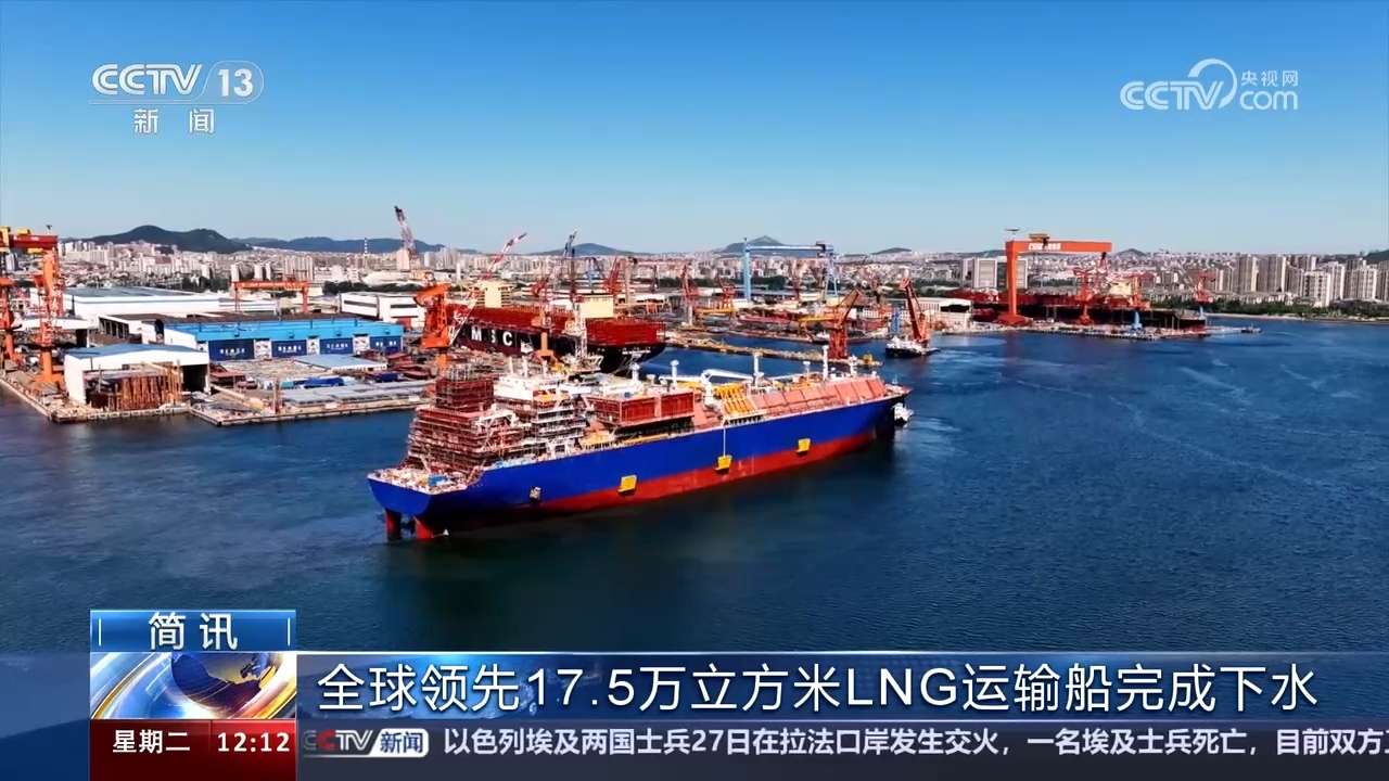 5月27日,由中國船舶大連造船研發(fā)建造的LNG液化天然氣運輸船完成下水,運輸船總長295米,貨艙總艙容17.5萬立方米,可以停靠全球絕大多數(shù)大型LNG岸站。接下來,運輸船將陸續(xù)完成水下系泊調(diào)試、貨艙貨物圍護系統(tǒng)施工,預(yù)計2025年8月中旬交付。