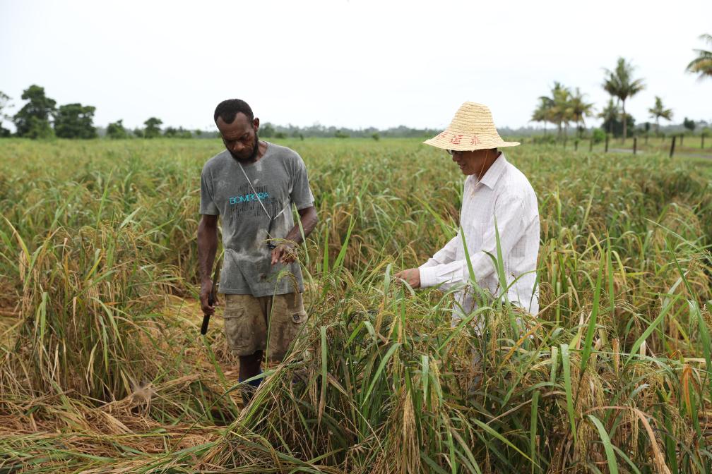 3月13日,在太平洋島國(guó)斐濟(jì)瑙索里鎮(zhèn),中國(guó)專家(右)在中國(guó)援斐濟(jì)農(nóng)業(yè)發(fā)展技術(shù)水稻項(xiàng)目試驗(yàn)示范培訓(xùn)基地查看暴雨過(guò)后水稻倒伏情況。新華社發(fā)(桑欽龍攝)