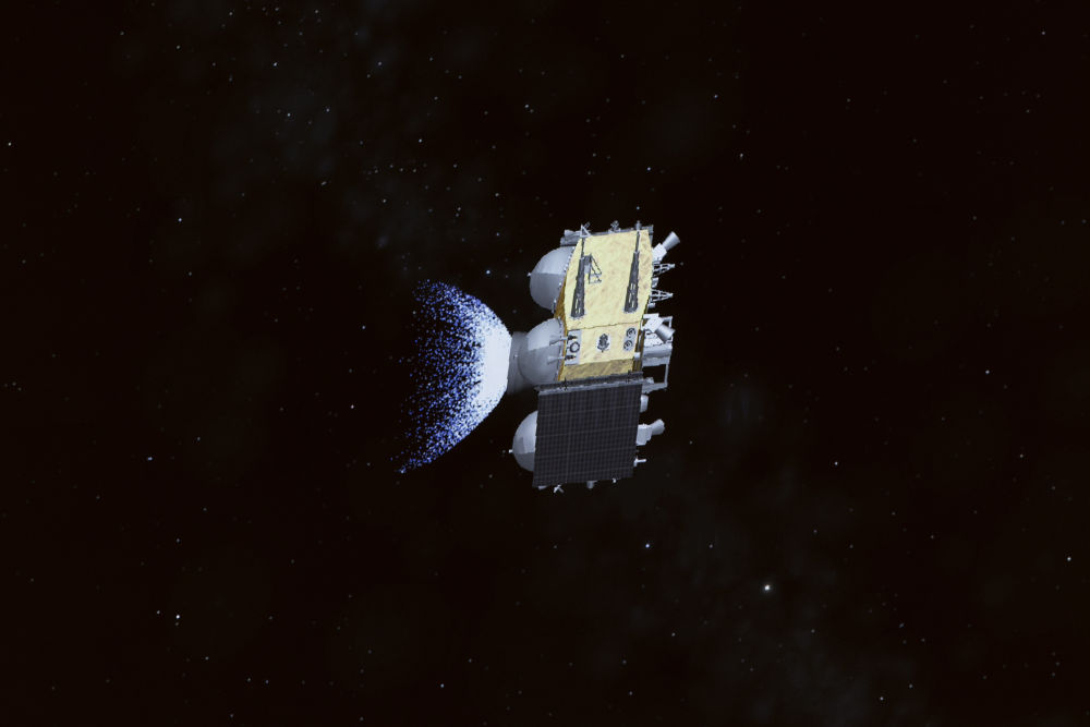 6月4日在北京航天飛行控制中心屏幕上拍攝的嫦娥六號(hào)上升器攜帶月球樣品自月球背面起飛的動(dòng)畫(huà)模擬畫(huà)面。
