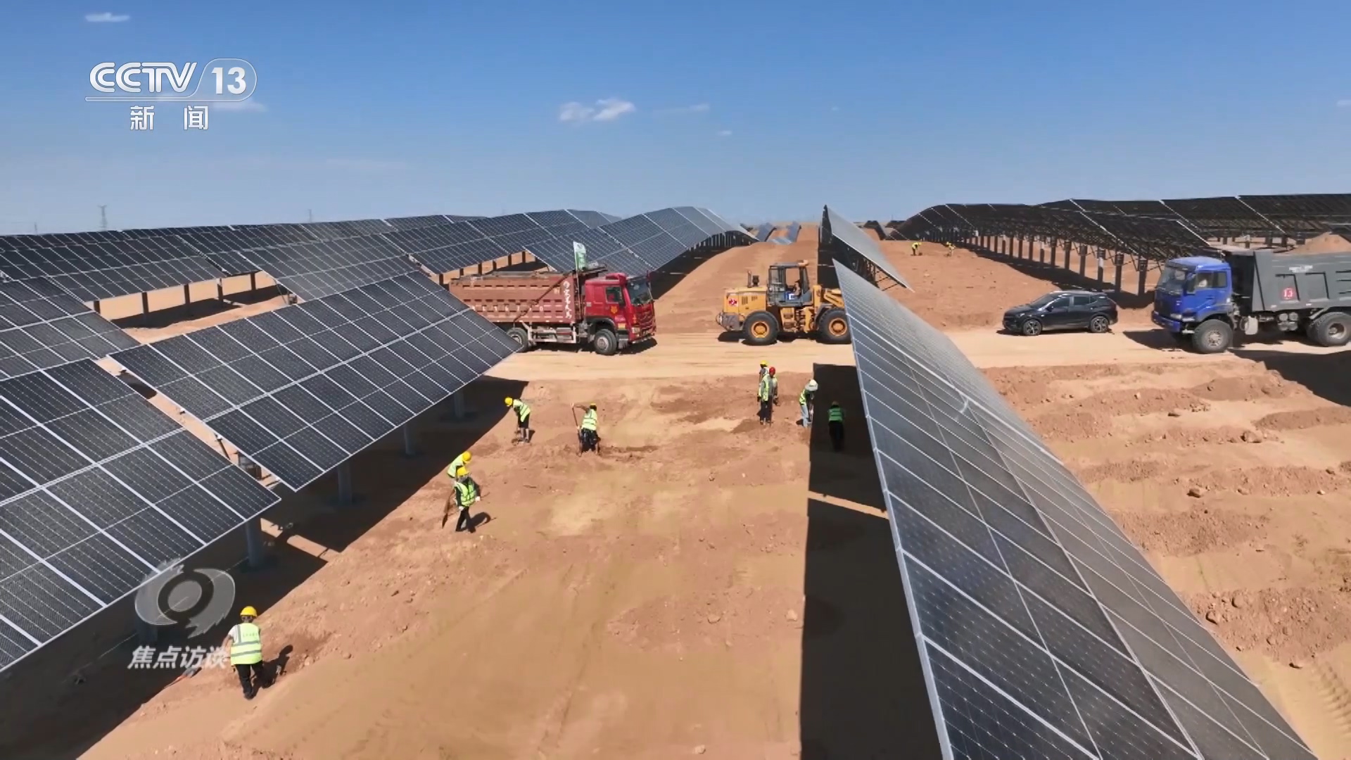 在內(nèi)蒙古庫布其沙漠北緣,一排排深藍(lán)色的太陽能電池板格外醒目??偼顿Y115億元、占地48.7萬畝、光伏裝機(jī)容量13GW的新能源基地正在加緊建設(shè)。這個新能源項目是鄂爾多斯市防沙治沙的重點(diǎn)工程。沙漠、沙地地廣人稀,蘊(yùn)藏著巨大的風(fēng)能、太陽能資源。內(nèi)蒙古自治區(qū)“跳出治沙看治沙”,實(shí)施防沙治沙和風(fēng)電光伏一體化工程,統(tǒng)籌推進(jìn)增綠、增能、增收,力求取得1+1>2的效果。