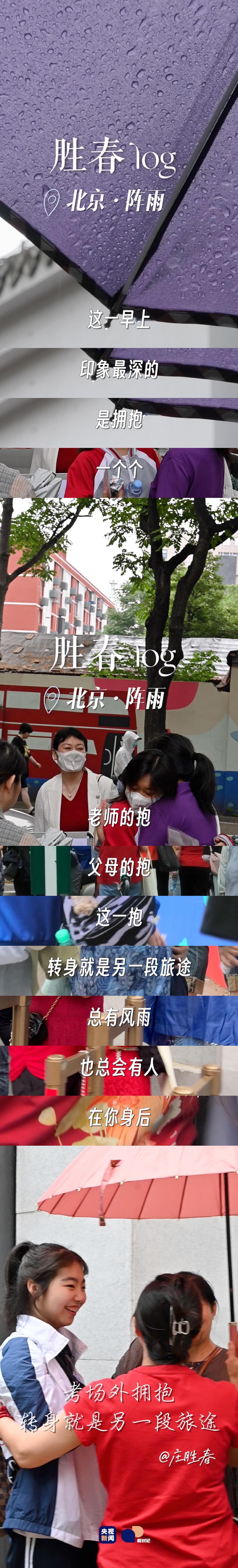 北京的陣雨里,不少考生,要在進(jìn)場(chǎng)前,等等爸爸媽媽。
