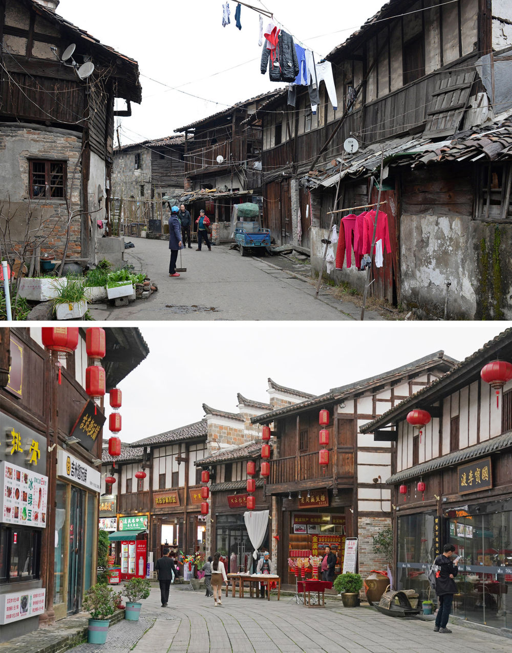 拼版照片:上圖為福建泰寧縣古城核心區(qū)(資料照片);下圖為同一地點拍攝的福建泰寧縣古城核心區(qū)(2024年4月20日新華社記者魏培全攝,無人機照片)。新華社發(fā)