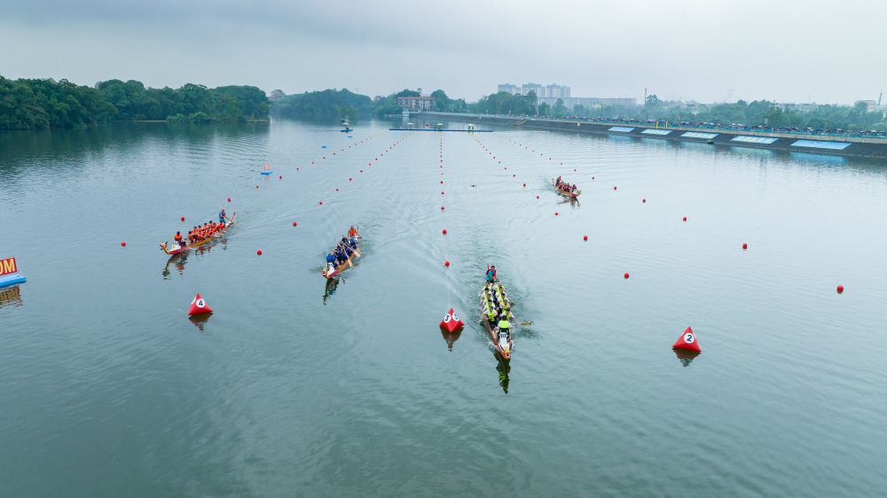 圖為6月10日端午節(jié)在重慶舉行的“大足石刻杯”成渝雙城經(jīng)濟(jì)圈龍舟邀請賽決賽現(xiàn)場。(瞿波 攝)