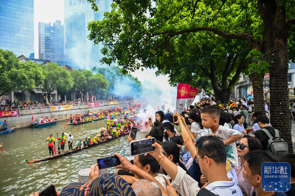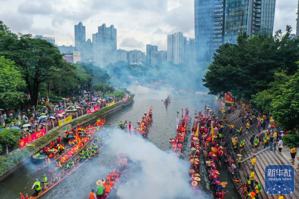 6月10日,國(guó)內(nèi)外游客匯聚在獵德觀賞“龍船景”?!褒埓啊笔菑V府地區(qū)水鄉(xiāng)在端午期間舉辦的一種民俗活動(dòng)。