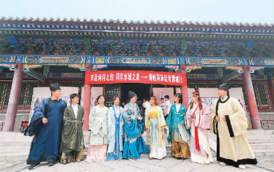 在聊城文廟,臺(tái)灣媒體人穿漢服體驗(yàn)傳統(tǒng)文化。