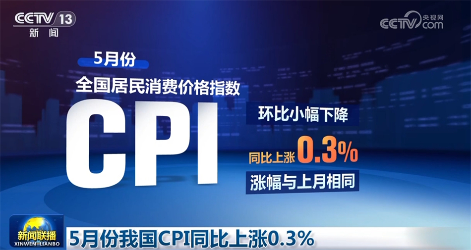 記者從國家統(tǒng)計(jì)局最新發(fā)布的數(shù)據(jù)中了解到,5月份,全國居民消費(fèi)價(jià)格指數(shù)(CPI)環(huán)比受季節(jié)性因素影響小幅下降,同比上漲0.3%,漲幅與上月相同。從構(gòu)成CPI的八大類商品和服務(wù)價(jià)格看,除食品和交通通信價(jià)格同比下降外,衣著、居住等其他六大類價(jià)格均同比上漲,居民消費(fèi)需求恢復(fù)的態(tài)勢(shì)持續(xù)鞏固,我國消費(fèi)市場(chǎng)運(yùn)行總體平穩(wěn)。