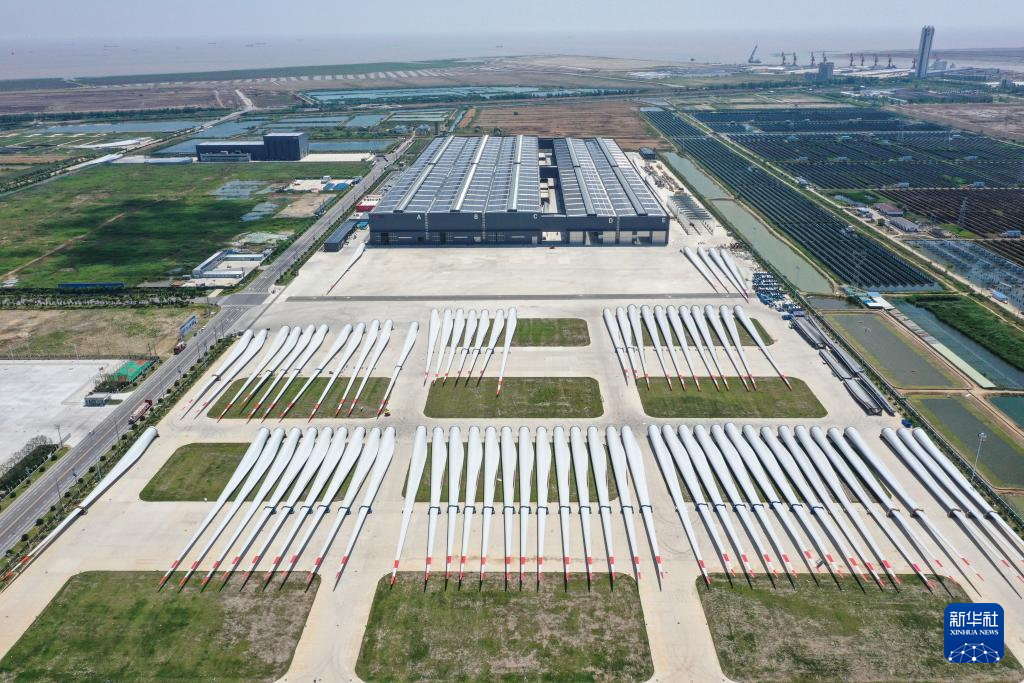 6月6日拍攝的位于射陽港低(零)碳產(chǎn)業(yè)園的射陽中車風(fēng)電葉片工程有限公司的外景照片(無人機(jī)照片)。 新華社記者 楊磊 攝