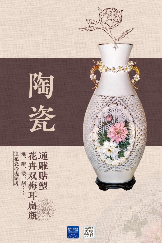通花瓷器鏤空可達5層之多,或施于釉上彩繪,或與浮雕、立雕相結(jié)合,或配以色土、腐蝕金等裝飾,玲瓏剔透,娟麗秀美。有的瓷瓣片下水不沉,落地不碎。