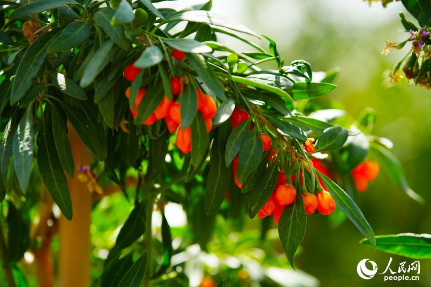 枸杞采摘園內掛在枝頭的枸杞。人民網(wǎng) 周航攝