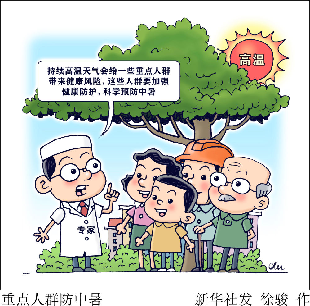 王荃特別提醒,老年人、兒童、孕產(chǎn)婦、慢性基礎(chǔ)性疾病患者以及戶外作業(yè)人員等人群,更容易發(fā)生中暑,需格外加強(qiáng)自身健康防護(hù)。