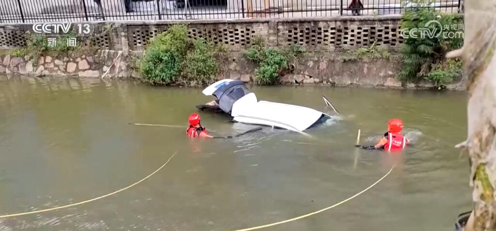 小車失控沖進(jìn)河涌 熱心群眾營救被困司機(jī)