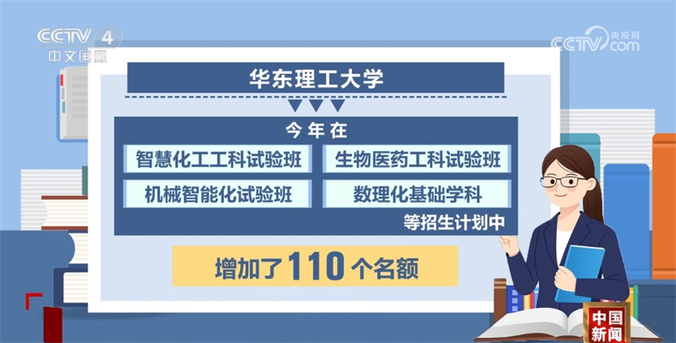 聚焦國(guó)家重大戰(zhàn)略和區(qū)域經(jīng)濟(jì)社會(huì)發(fā)展需求,今年不少高校強(qiáng)化了理工科優(yōu)勢(shì)專(zhuān)業(yè)招生計(jì)劃。北京化工大學(xué)今年增加了300個(gè)招生計(jì)劃,主要投放在化工、材料、機(jī)械和生物工程等理工類(lèi)國(guó)家急需專(zhuān)業(yè)以及數(shù)學(xué)、物理等基礎(chǔ)學(xué)科。華東理工大學(xué)今年在智慧化工工科試驗(yàn)班、生物醫(yī)藥工科試驗(yàn)班、機(jī)械智能化試驗(yàn)班、數(shù)理化基礎(chǔ)學(xué)科等招生計(jì)劃中,增加了110個(gè)名額。