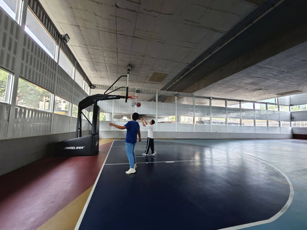 中學(xué)生在北京西城區(qū)天寧寺橋下空間籃球場(chǎng)運(yùn)動(dòng)。 新華社記者陳旭 攝