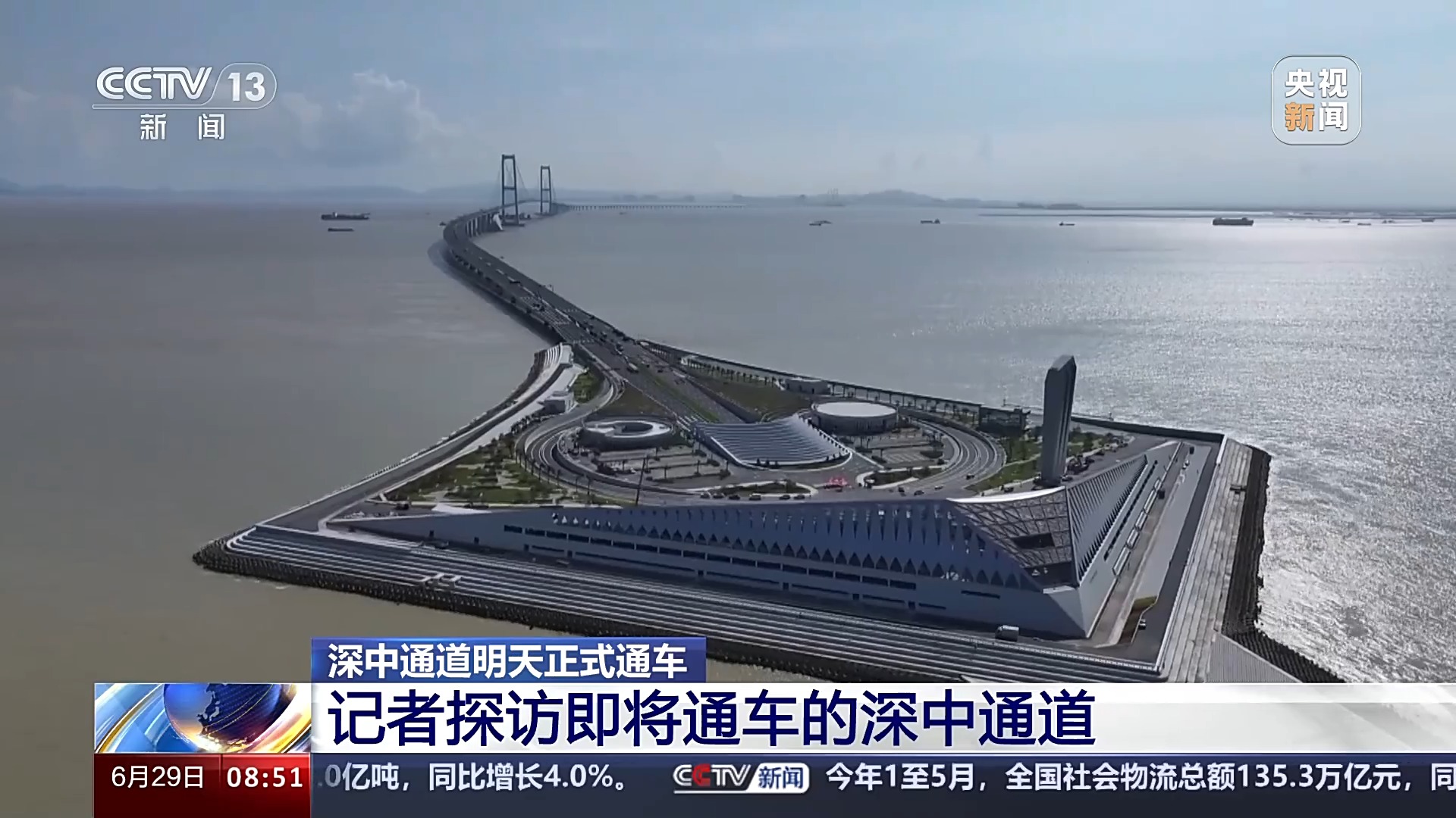 總臺記者 王思元:深中通道全長24公里,我們行駛了大概18分鐘,就已經(jīng)通過海底隧道進入了深圳。這里是重要的互聯(lián)互通的交通樞紐,我身后就是廣深沿江高速,通過我的另一側,大家可以看到,從這里行駛5公里左右,就可以到達機荷高速和廣深高速了,從這個位置到達深圳寶安國際機場有2公里的距離。