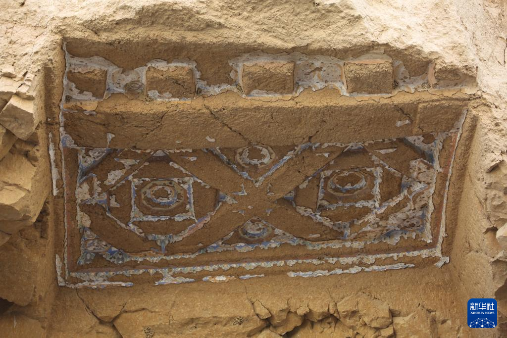 這是6月15日在阿富汗巴米揚(yáng)省弗拉迪石窟遺址區(qū)拍攝的一處石窟頂部結(jié)構(gòu)與殘存壁畫(huà)。新華社發(fā)(塞夫拉赫曼·薩菲攝)
