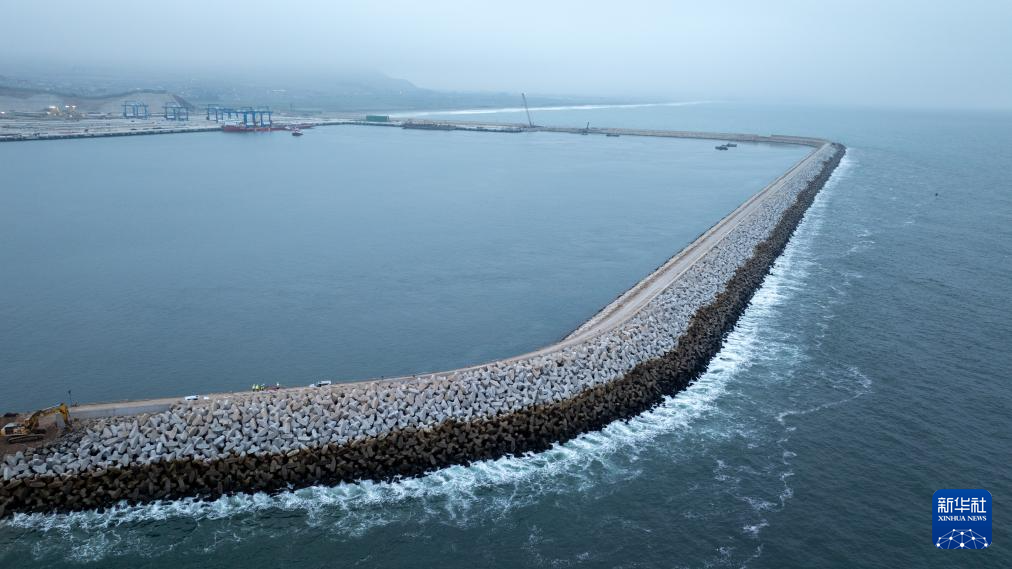這是6月21日在秘魯錢(qián)凱港拍攝的防波堤(無(wú)人機(jī)照片)。 新華社記者 李木子 攝