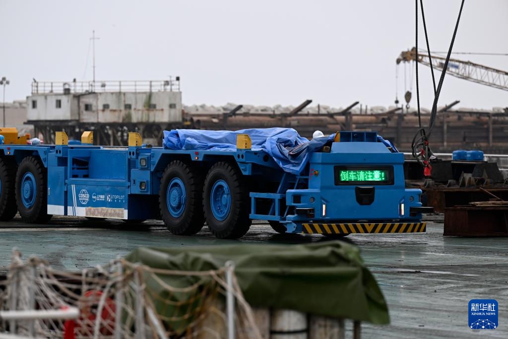 這是6月21日在秘魯錢(qián)凱港碼頭操作區(qū)拍攝的具備自動(dòng)駕駛技術(shù)的電動(dòng)集裝箱卡車(chē)。 新華社記者 李木子 攝