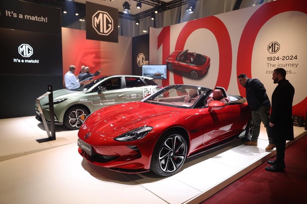 1月17日,人們在比利時(shí)布魯塞爾舉辦的2024布魯塞爾汽車展上參觀上汽名爵電動(dòng)汽車。新華社記者趙丁喆攝