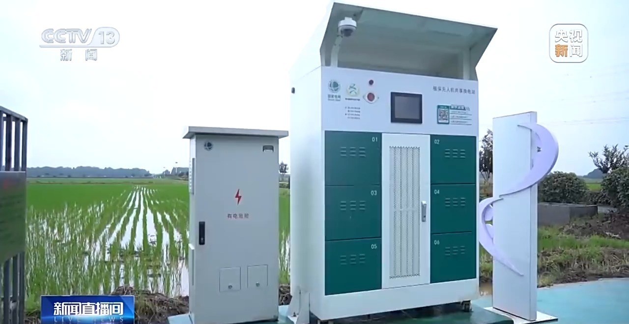 采訪中記者發(fā)現(xiàn),今年的植保無人機有了新的變化。在江蘇蘇州,當?shù)卦谔镩g地頭投運了全省首個植保無人機智慧換電站,實現(xiàn)植保無人機從“燃油充電”到“綠色換電”。