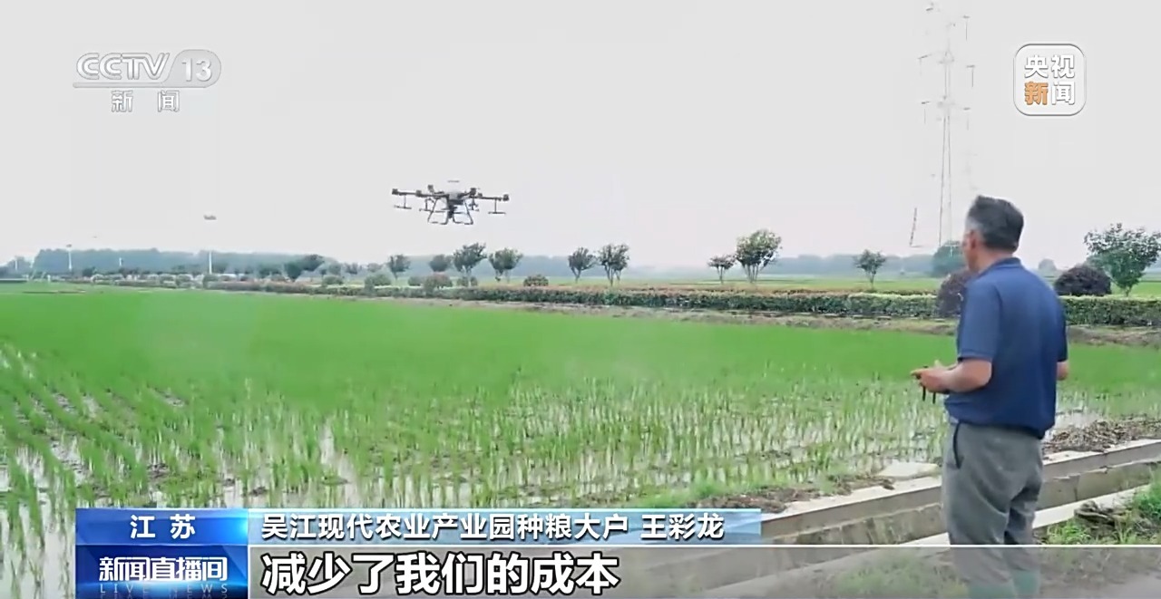 吳江現(xiàn)代農業(yè)產(chǎn)業(yè)園種糧大戶 王彩龍:以前我們打汽油充電的話,成本一天至少在150塊左右,現(xiàn)在用了這個充電樁,在15到20塊之間吧,減少了我們的成本。