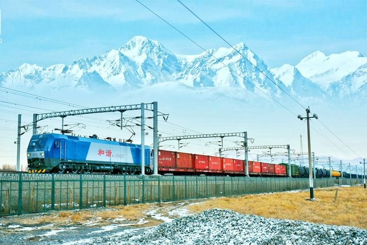 天山腳下繁忙的中歐班列(2016年11月29日攝)。新華社發(fā)(擺風(fēng)亮 攝)
