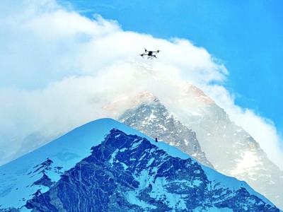 中國(guó)民用無(wú)人機(jī)完成全球首次珠峰6000米海拔物資運(yùn)輸。新華社發(fā)