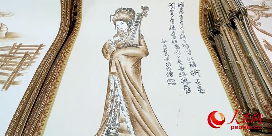 精美的羊毛氈烙畫。人民網(wǎng)記者 寇雅楠攝