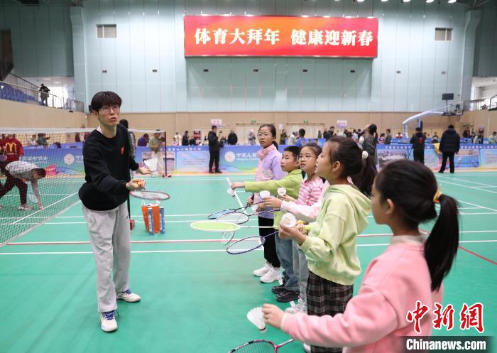 1月18日,2024年寧夏全民健身大拜年暨體育項(xiàng)目推廣普及培訓(xùn)班在銀川開班,小朋友們跟著教練學(xué)習(xí)羽毛球顛球。記者 于晶 攝