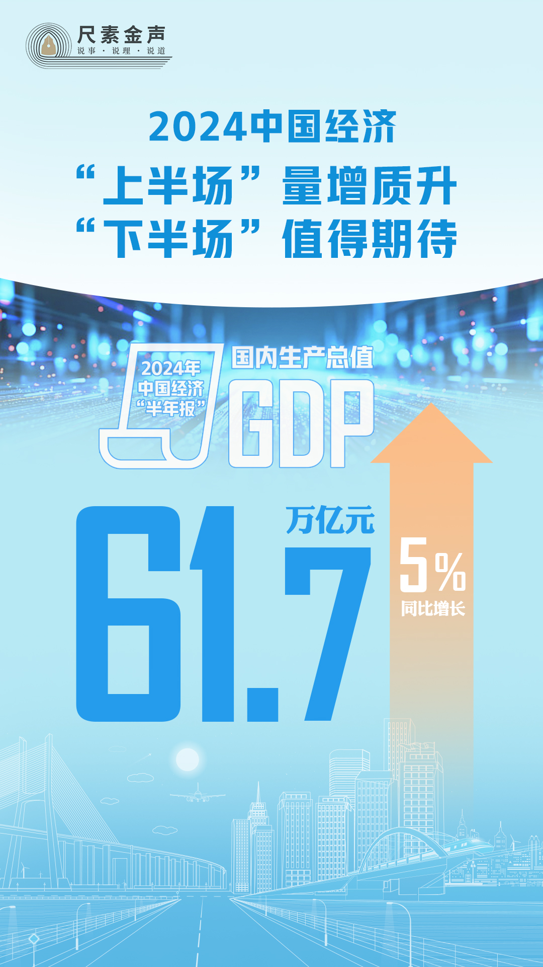 正在北京舉行的黨的二十屆三中全會(huì),將重點(diǎn)研究進(jìn)一步全面深化改革、推進(jìn)中國式現(xiàn)代化。改革的“時(shí)代新篇”萬眾矚目,中國的發(fā)展也令人高度關(guān)注——同日,國家統(tǒng)計(jì)局發(fā)布2024年中國經(jīng)濟(jì)“半年報(bào)”:國內(nèi)生產(chǎn)總值(GDP)61.7萬億元,同比增長(zhǎng)5%。結(jié)合二季度國內(nèi)外形勢(shì),預(yù)計(jì)上半年中國經(jīng)濟(jì)增速仍將保持領(lǐng)先,仍是世界經(jīng)濟(jì)增長(zhǎng)的重要引擎和穩(wěn)定力量。