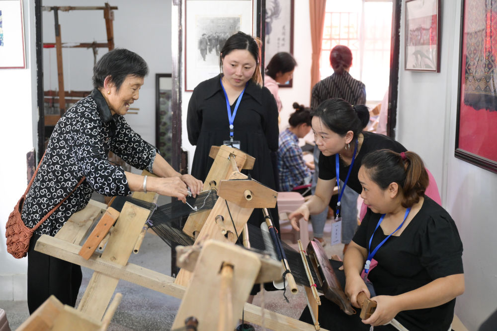 夏日的午后,湖北省恩施州來鳳縣桂花樹社區(qū)濃蔭如蓋,一座位于半坡的三層小樓里不時(shí)傳來木織機(jī)“吱呀”作響的聲音。
