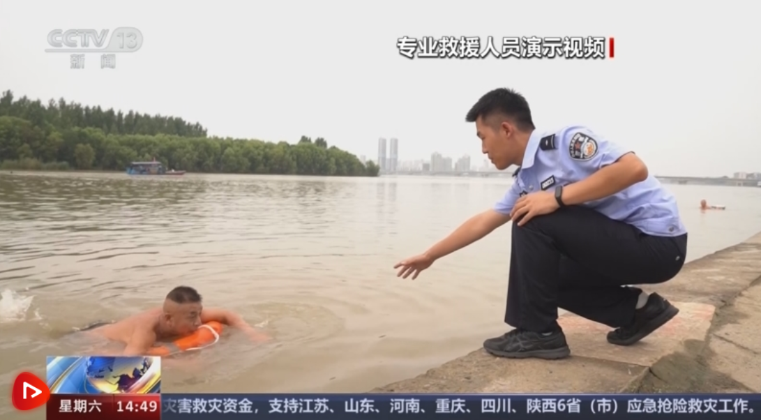 央視網(wǎng)消息:萬一不小心落水,人們應(yīng)該如何自救?眼下,正值暑假,為增強市民防溺水意識,湖北襄陽民警聯(lián)合志愿者,為社區(qū)居民展示了游泳圈、救生衣的正確使用方式。