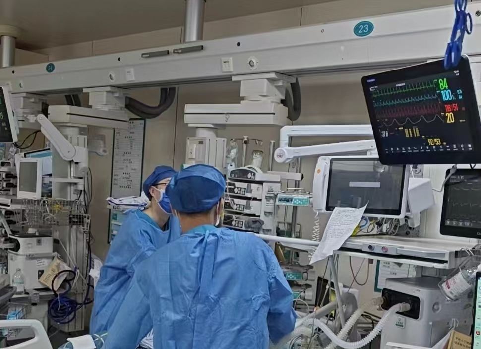 近日,湘雅二醫(yī)院重癥醫(yī)學科醫(yī)生搶救熱射病患者。新華社發(fā)