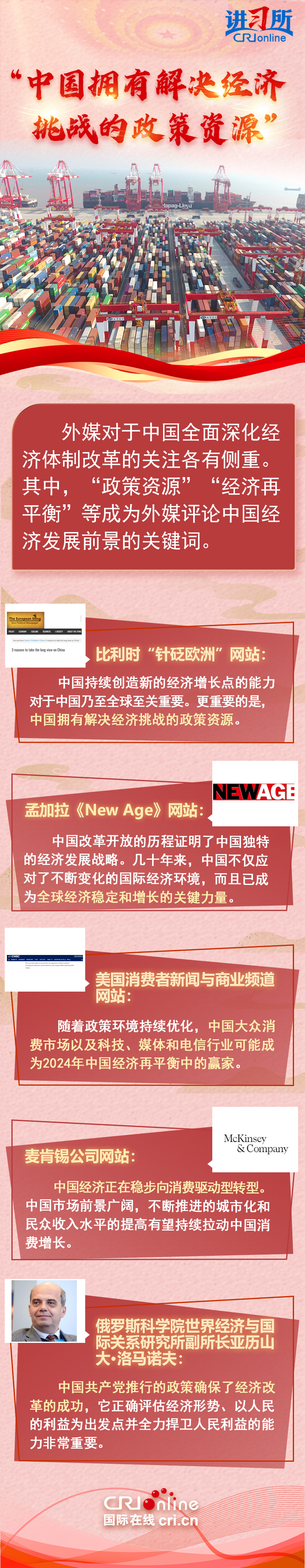 聯(lián)合國秘書長古特雷斯曾說,“人類的未來很大程度上取決于中國?!睙o疑,作為全球第二大經(jīng)濟體,全世界的目光正聚焦中國,關(guān)注著中國這場全面深化改革。