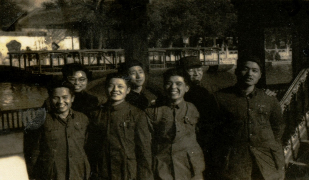 1952年在清華大學石油系與系內(nèi)部分青年教師合影(前排左二為方華燦)。新華社發(fā)