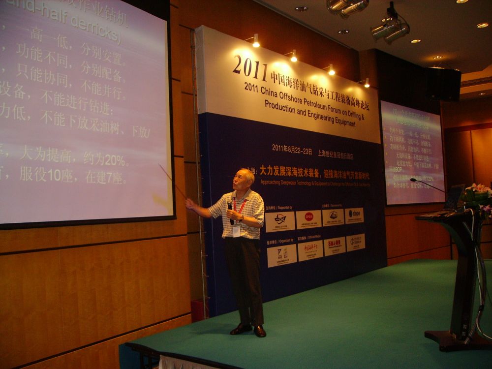 2011年,方華燦在上海參加中國海洋油氣鉆采與工程裝備高峰論壇時作學術(shù)報告。新華社發(fā)