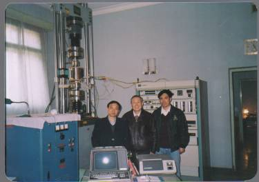 20世紀80年代在華東石油學院試驗室與研究生進行海洋鋼結(jié)構(gòu)疲勞試驗(中為方華燦)。新華社發(fā)