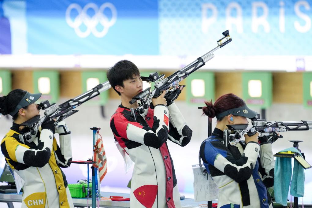 巴黎奧運會首金大概率將在射擊項目的10米氣步槍混合團體上產(chǎn)生。代表中國隊出戰(zhàn)的是黃雨婷/盛李豪和韓佳予/杜林澍兩對組合。四人中僅盛李豪有過奧運經(jīng)驗,他在東京奧運會上一鳴驚人奪得男子10米氣步槍銀牌。三年過去,盛李豪更加成熟,他的混團搭檔黃雨婷年齡雖小,在賽場上卻異常沉穩(wěn),兩人已攜手奪得世錦賽、亞運會等多項大賽冠軍。