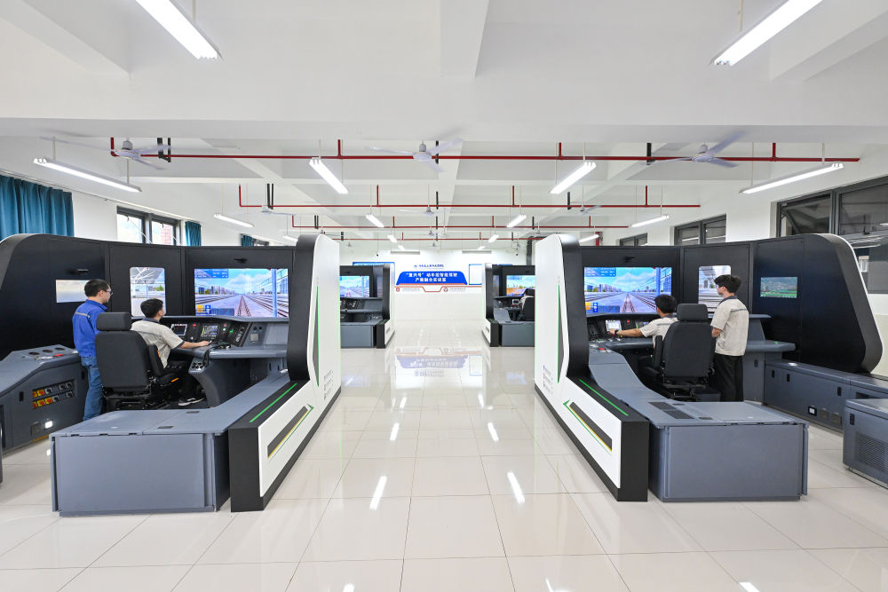 7月26日,湖南鐵道職業(yè)技術(shù)學院的學生在產(chǎn)教融合“復興號”動車組智能駕駛實訓室內(nèi)學習動車駕駛。 新華社記者 李鑫 攝