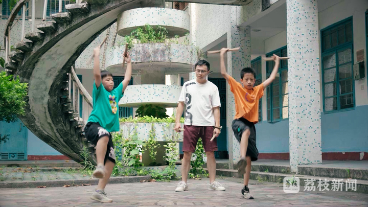 為了解決缺兵少將的問題,也讓更多年輕人愛上英歌舞,2017 年,陳來發(fā)教練力排眾議,打破“傳內(nèi)不傳外、傳男不傳女”的舊俗,推動英歌參與“非遺進(jìn)校園”活動,于普寧市南山小學(xué)組建一支少兒英歌隊(duì),面向全校招生,首批報(bào)名者多達(dá) 380 余人。自此,陳揚(yáng)波也開始站在學(xué)生面前,成為了普寧英歌向下傳播的一個紐帶。