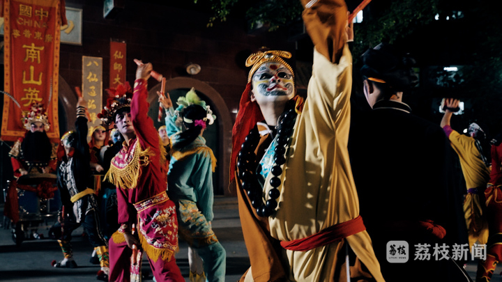 因大部分經(jīng)驗(yàn)豐富的隊(duì)員前往倫敦,陳揚(yáng)波選擇留在家鄉(xiāng),引領(lǐng)其余年輕隊(duì)員繼續(xù)進(jìn)行他們自幼熟知的游街演出。舞槌似畫戟,步伐若戰(zhàn)馬,身著戲服的隊(duì)員們將自己的故事融入英歌之中,用行動詮釋著“一朝拾起英歌槌,一生便是英歌人”。