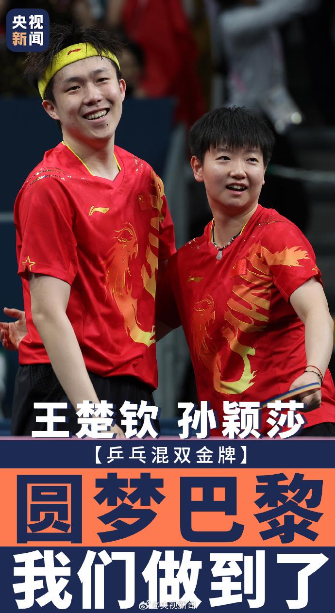 7月30日,在巴黎奧運會乒乓球混合雙打決賽中,中國組合王楚欽/孫穎莎4-2戰(zhàn)勝朝鮮組合,奪得金牌?!拔覀冏龅搅?!”東京的遺憾在巴黎畫上了一個圓滿的句號!