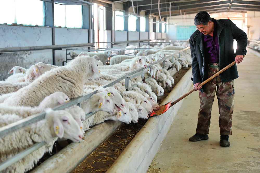 山西省朔州市右玉縣張千戶嶺養(yǎng)殖專業(yè)合作社的工作人員王吉在喂羊(資料照片)原勛攝/《瞭望》