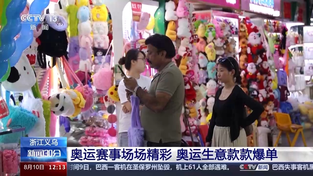 搭乘奧運(yùn)東風(fēng)的不僅是體育健兒的同款配飾,奧運(yùn)周邊產(chǎn)品也備受市場(chǎng)青睞。在義烏國(guó)際商貿(mào)城,這里匯集26個(gè)大類(lèi)、210多萬(wàn)種商品,不僅滿(mǎn)足了全球觀眾和參賽者的需求,也給義烏商家?guī)?lái)了明顯的經(jīng)濟(jì)效益。