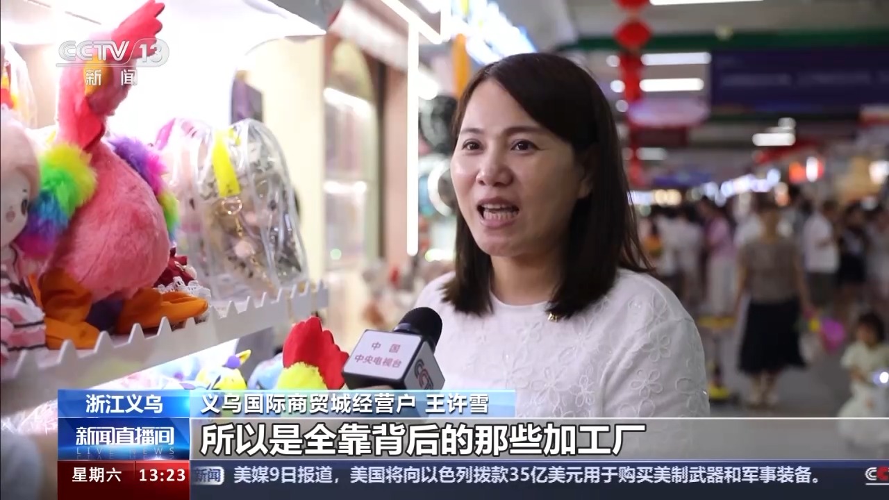 義烏國(guó)際商貿(mào)城經(jīng)營(yíng)戶(hù) 王許雪:像我們背后都有100來(lái)家工廠給我們供應(yīng),所以是全靠背后的那些加工廠來(lái)支持我們,全國(guó)各地的都有。