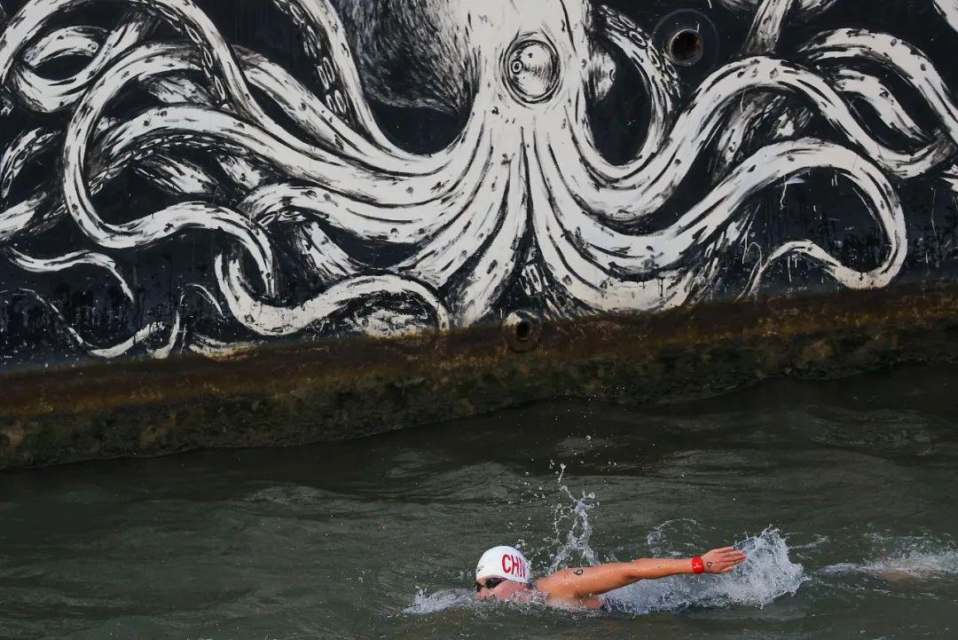 與鐵人三項(xiàng)一樣,馬拉松游泳比賽同樣在塞納河進(jìn)行,辛鑫是中國(guó)隊(duì)在該項(xiàng)目中唯一的選手。