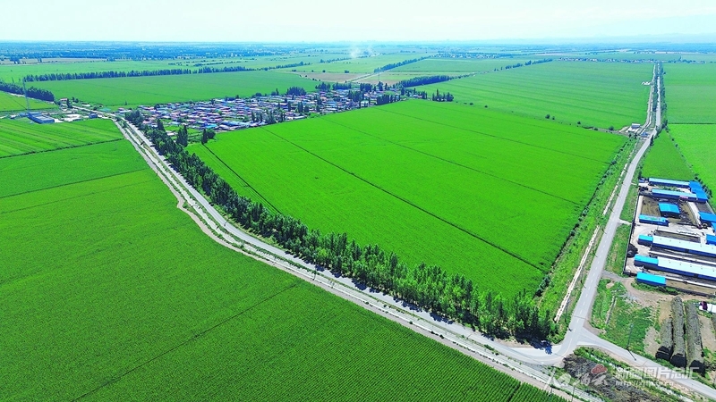 俯瞰博樂市小營盤鎮(zhèn)呼和布熱村一角(8月8日無人機攝)。放眼該村,平坦的農(nóng)村公路、綠色的條田、整齊的村莊,形成一幅美麗的鄉(xiāng)村畫卷。 賀程攝